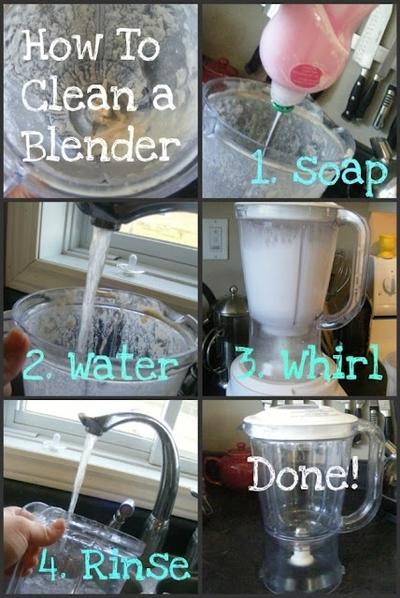 Pernah merasa kesulitan mencuci blender? Blender memiliki pisau-pisau pemotong yang kadang sulit untuk dibersihkan karena letakknya terlalu dalam. Coba cara ini: Masukkan air sabun ke dalam blender yang akan dicuci, tekan tombol blender dan biarkan ia berkerja. Done! Sisanya, kamu hanya perlu membilas dengan air bersih.